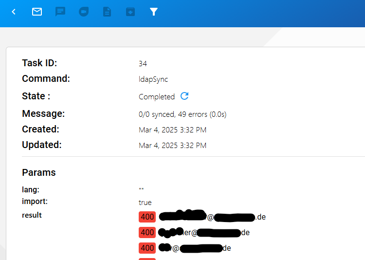 Successfully connected to xxx.intern:389 as CN=svc_grommunio,OU=_Dienste und Service Benutzer,DC=xxx,DC=intern