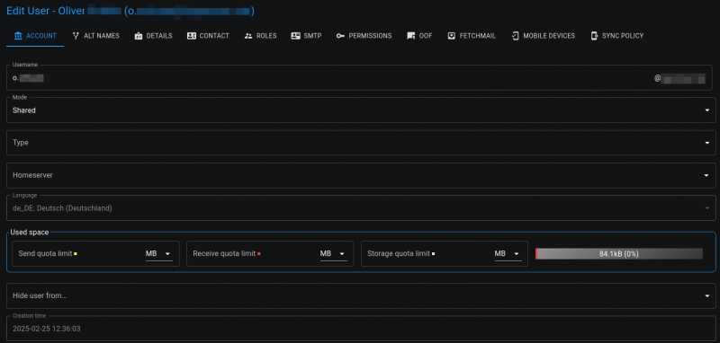 WalterH meinte ja, mal ein wenig Zeit lassen nach dem Löschen. Ich wollte meine Shared Mailbox mal ein paar Tage löschen und ein Update der Deb Pakete abwarten um sie dann neu anzulegen. Dafür wollte ich die Mailadresse der Shared Mailbox zum Hauptpostfach als Alias hinzufügen, damit ich die Mails im Eingang bekomme, senden muss ich nicht oft damit. Und so hat es mich gewundert, das es die da schon gab und das natürlich zu Fehlern führt.