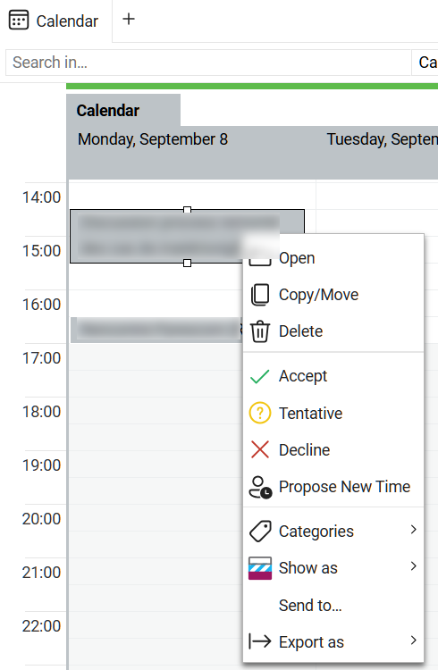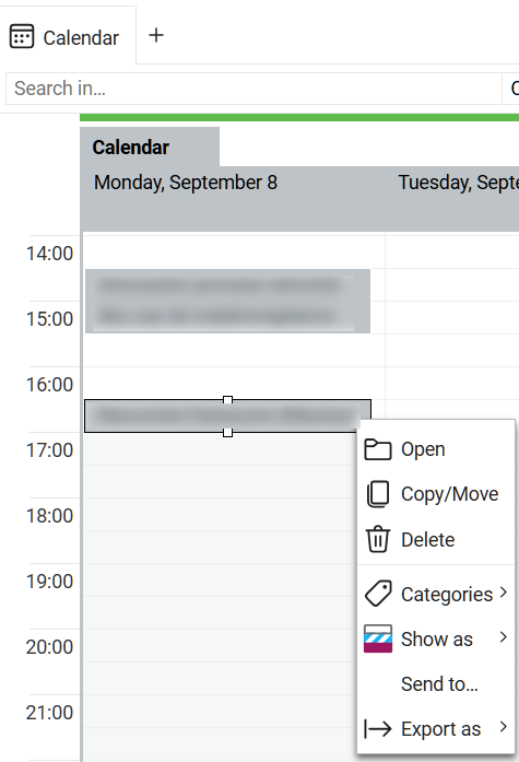Now the fun part is that if I change the calendar view to "list", the appointment is shown in list, but doesn't show in the "day / week / month" views.