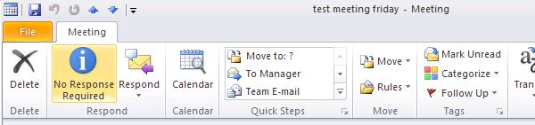 I have random outlook appointments where I cannot accept meeting requests because "no response required" appears in outlook.