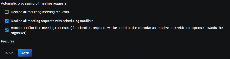 I checked both decline meetings with secheduling conflicts and accept conflict-free metings as in the following screenshot.