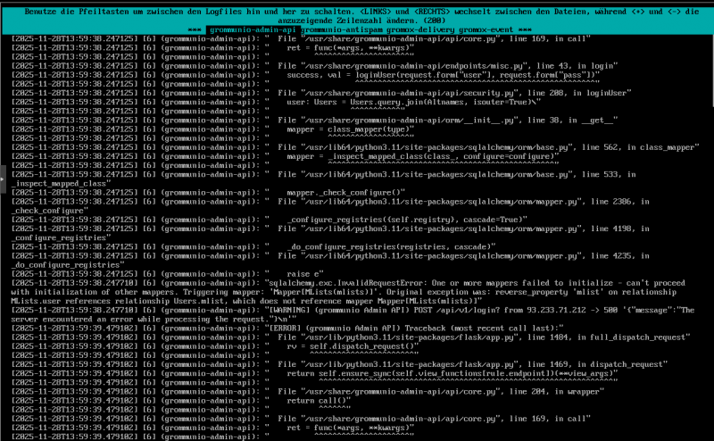 Skyline328 Hi, i do a fresh install of grommunio and try to login to htttps://fqdn.de:8443 and got the error message "The server encountered an error while processing the request." In the Log Files i see somethink like this: any ideas? thanks!