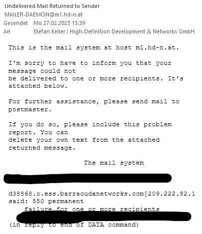 Die E-mail ist korrekt und wird laut vorgeschaltener Baracuda auch als deliverd markiert.