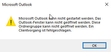 Im Outlook können die Berechtigungen des neu angelegten Unterordners nicht angezeigt werden: